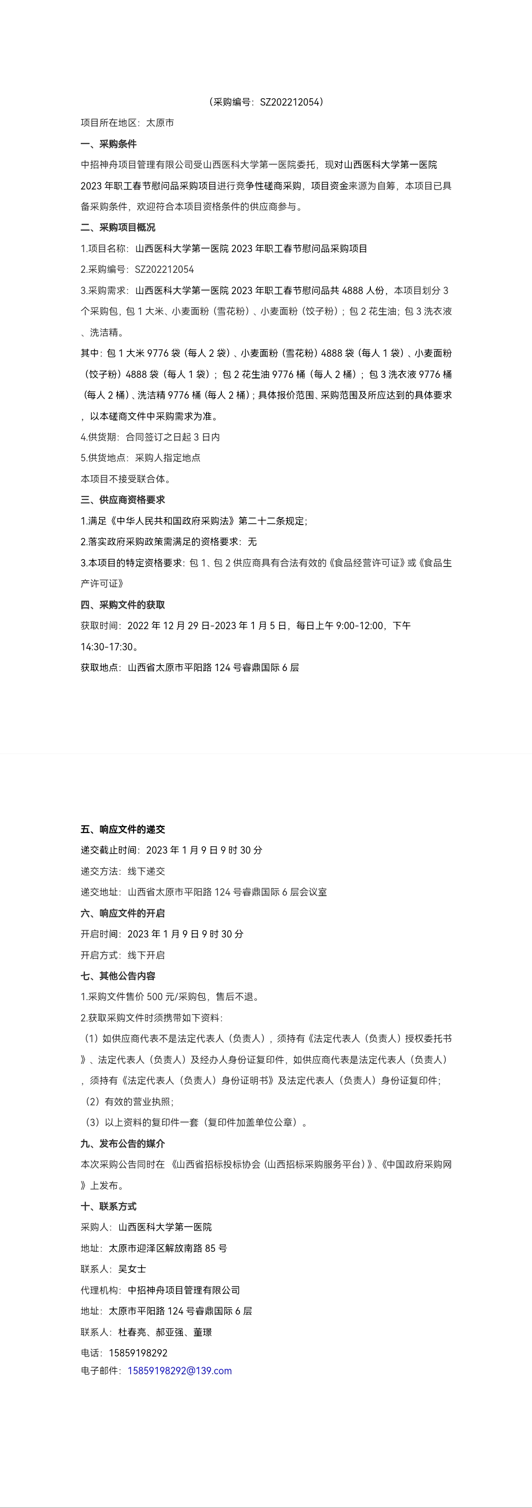 成人探花 2023年职工春节慰问品采购项目竞争性磋商谈判采购公告