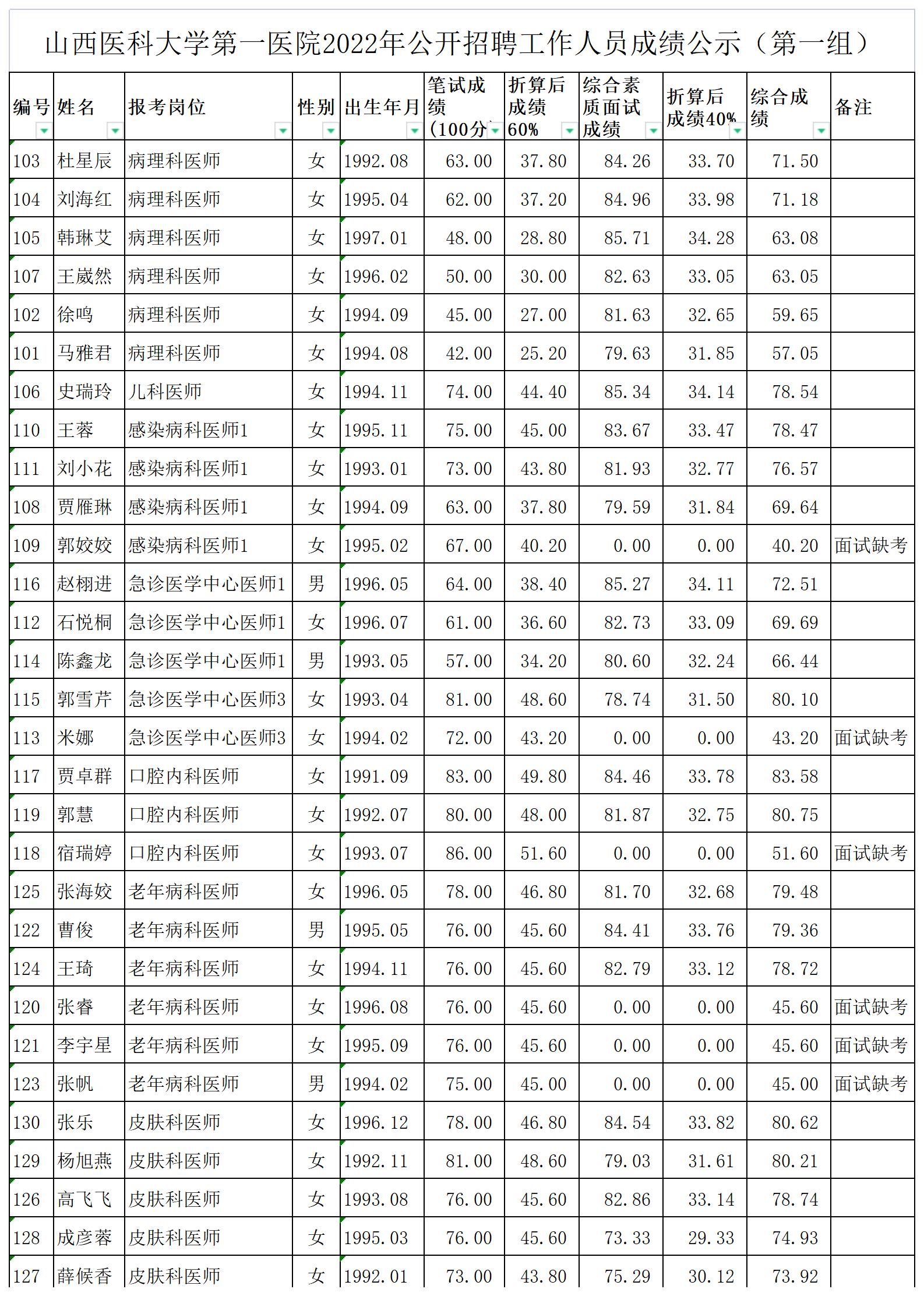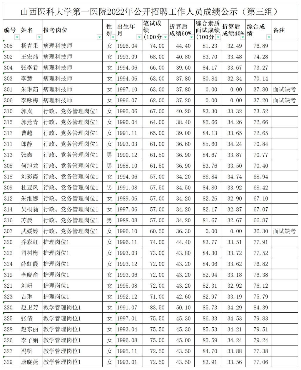 成人探花 2022年公开招聘工作人员成绩公示