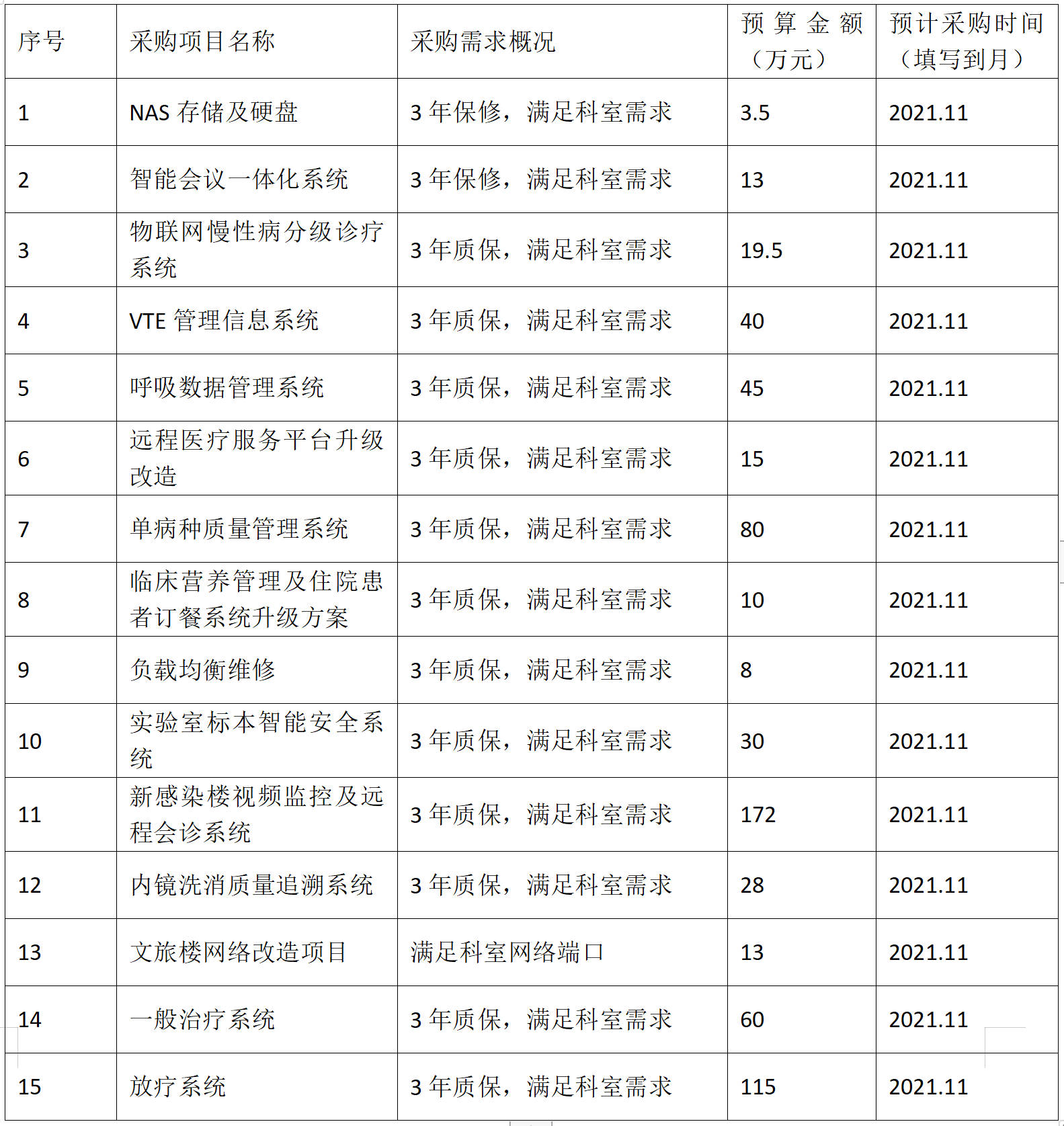 为便于供应商及时了解采购信息,根据《财政部关于开展政府采购意向公开工作的通知》(财库{2020}  10号)和《山西省财政厅关于推行和做好政府采购意向公开工作的通知》(晋财购{2021}  3号)等有关规定,现将成人探花 信息管理处2021年11月采购意向公开如下: