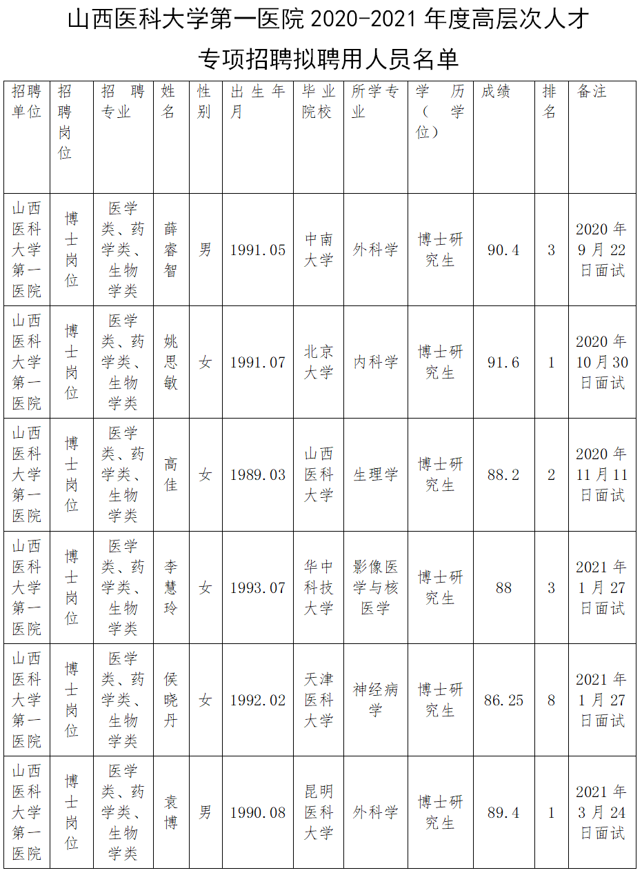 成人探花 2020-2021年度高层次人才专项招聘拟聘用人员公示