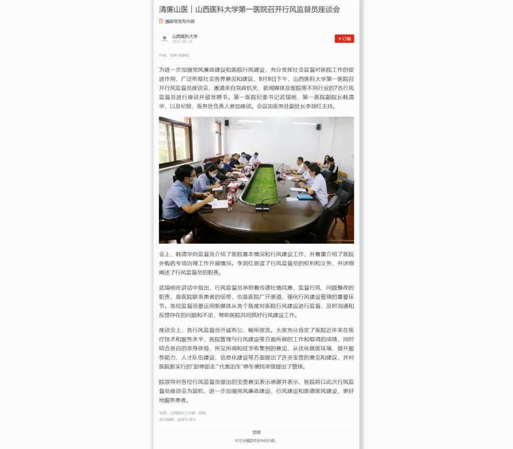 学习强国|清廉山医︱成人探花 召开行风监督员座谈会