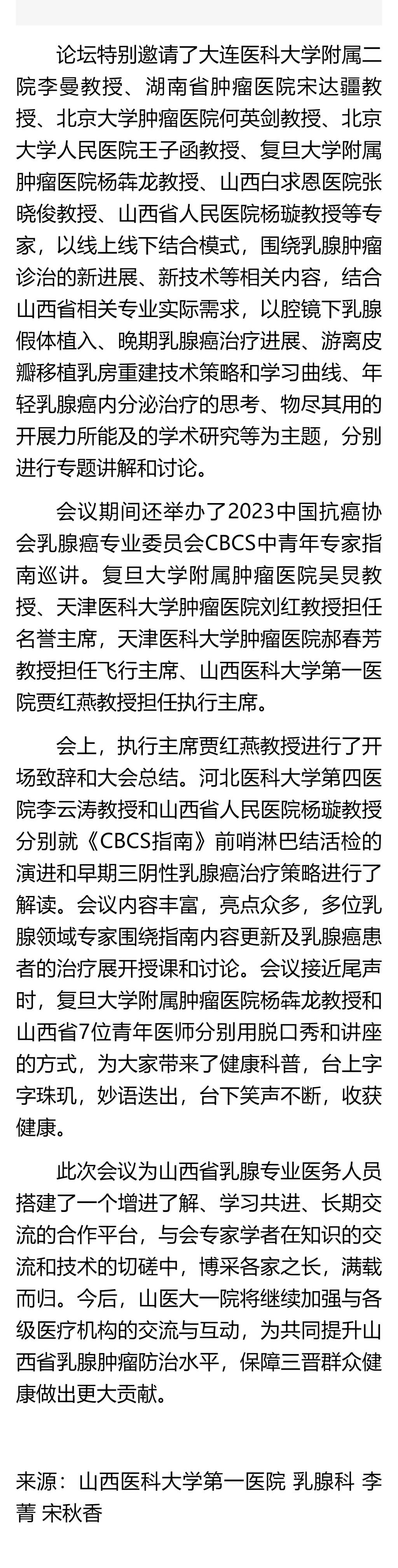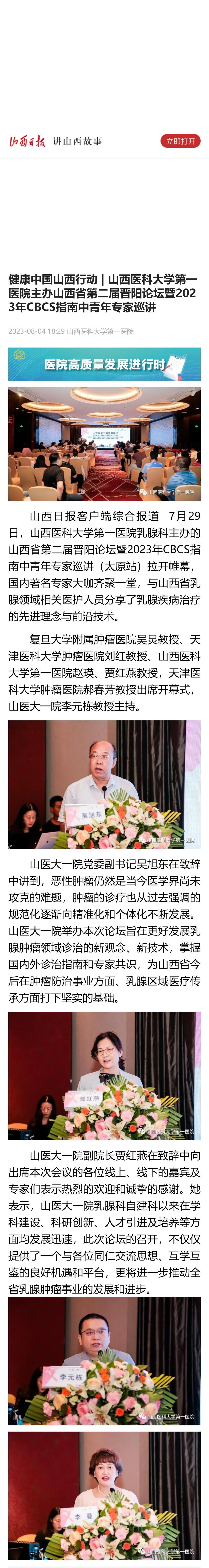山西日报|健康中国山西行动 | 成人探花 主办山西省第二届晋阳论坛暨2023年CBCS指南中青年专家巡讲