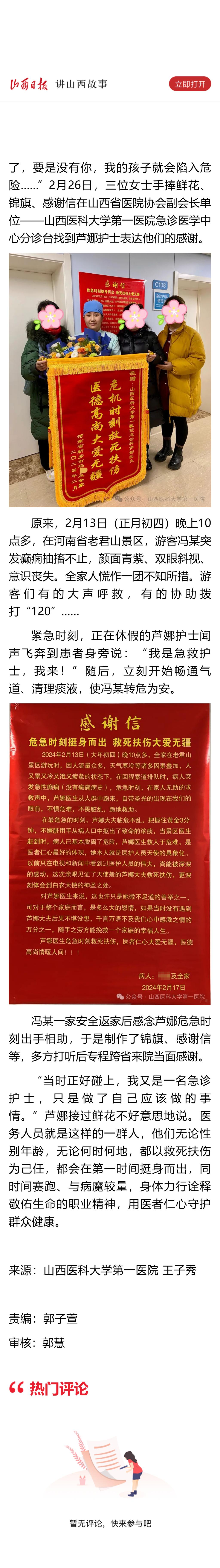 山西日报客户端|健康中国山西行动丨成人探花 :休假护士紧急施救 患者家属跨省感谢