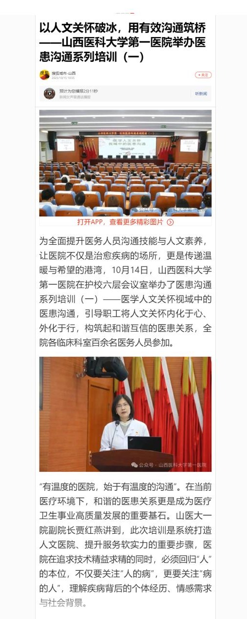 搜狐山西|以人文关怀破冰,用有效沟通筑桥——成人探花 举办医患沟通系列培训(一)