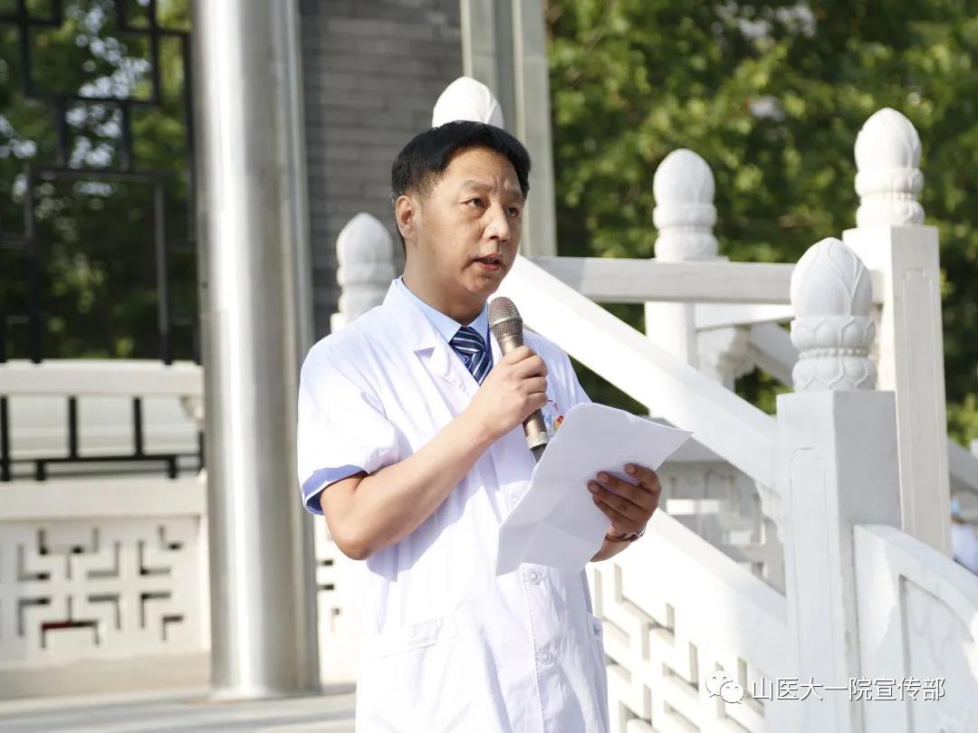 刘春书记在讲话中指出,今年是全面建成小康社会决胜之年、“十三五”规划收官之年、脱贫攻坚决战之年,也是我院改革发展的关键之年,各位党员要以永不懈怠的精神状态和一往无前的奋斗姿态,践行初心使命。要深入学习贯彻习近平新时代中国特色社会主义思想,特别是总书记视察山西的重要指示精神和关于医疗卫生工作的重要论述,用创新理论武装头脑、指导实践、推动工作。要在疫情防控的特殊时期,积极发挥党员先锋模范作用,认真履行党员义务,在与疫情作斗争的同时保证医疗服务质量,以实际行动践行入党誓词,主动接受党组织的考验。要强化责任意识,认真履职尽责,落地落实院党委推进现代医院管理制度建设,推进“136”兴医工程和国家区域医疗中心建设,推进互联网医院建设,推进卫生应急防控体系建设等各项重大决策部署,努力在健康山西发展上率先蹚出一条新路来。他强调,中国共产党已经走过99年光辉而不平凡的历程,即将跨越百年。广大党员要更加紧密地团结在以习近平同志为核心的党中央周围,不忘初心、牢记使命,勤勉敬业、砥砺奋进,以一流的精神状态和一流的工作业绩,为人民生命健康保驾护航。