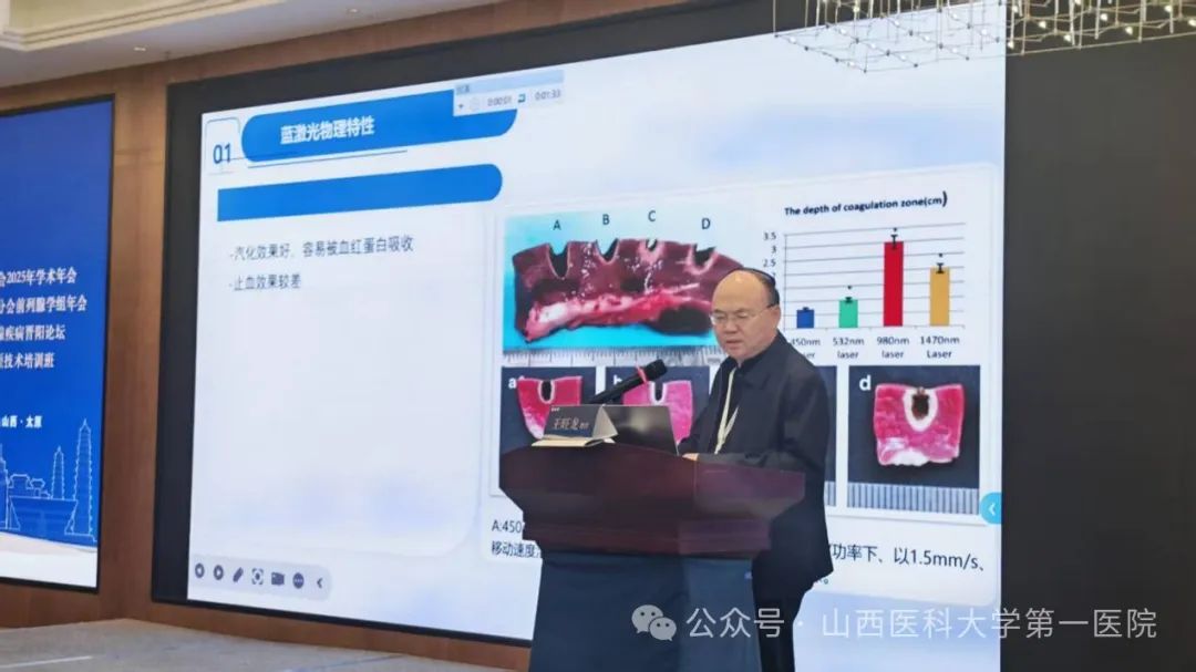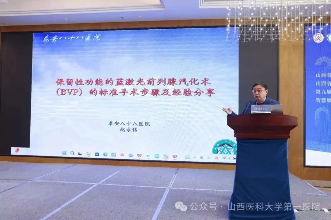 会议期间,众多专家带来了精彩的学术报告。北京大学第一医院孟一森讲解了前列腺增生激光手术的临床研究进展;上海交通大学医学院附属仁济医院童臻分享了“TUCBPD 使用经验”;南京医科大学魏勇带来了单中心经尿道前列腺热蒸汽消融术经验;泰安八十八医院赵永伟介绍了保留性功能的蓝激光前列腺汽化术标准手术步骤及经验;山医大一院曹晓明讲解了后入路视角下的RP相关解剖。