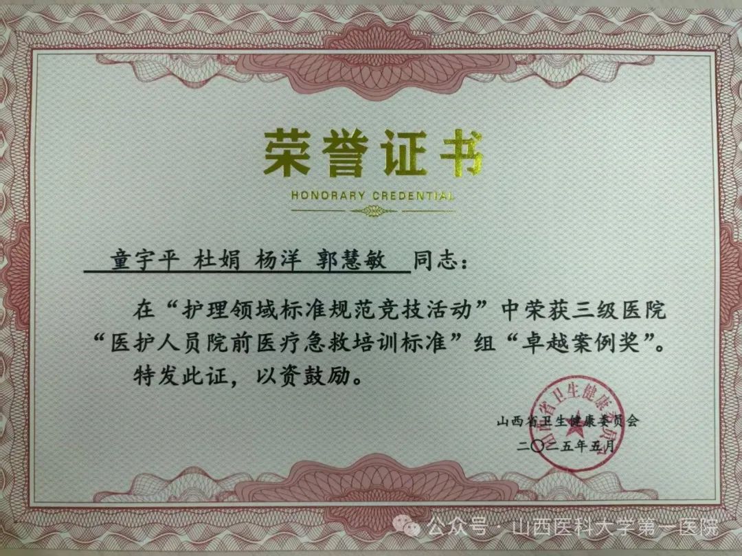 决赛中,案例《贯标铸盾,救在分秒——基于WS/T839行标的院前急救专业化能力提升行动》《“一菌不染,洁护无患”》《注安防感,守护生命——1M3S管理体系实践》《痛在术后,护在掌心》分别荣获赛道一《医护人员院前医疗急救培训标准》、赛道二《口腔门诊医院感染管理标准》、赛道三《注射相关感染预防与控制》以及赛道五《成人手术后疼痛评估与护理》卓越案例奖。