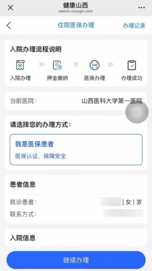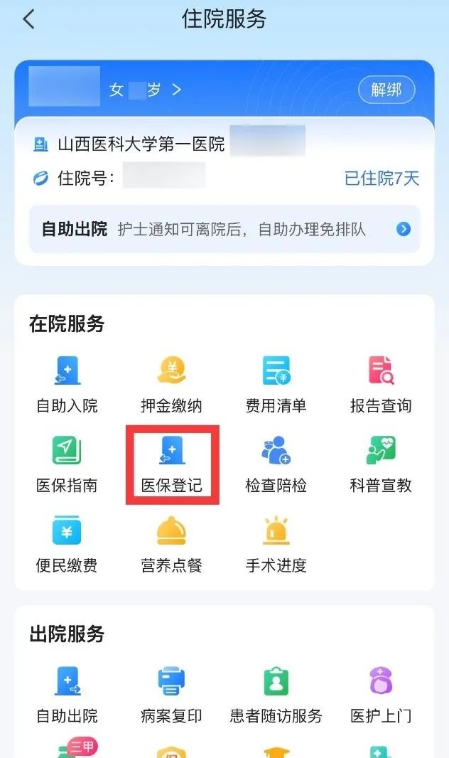 (1)健康山西APP—入出院—绑定住院号—医保登记