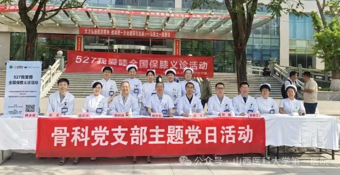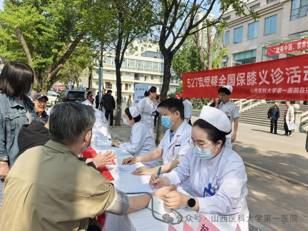 骨科组织关节、运动医学专家,膝关节护理专家在1号住院楼前小广场举行了“5.27 我爱膝”主题公益活动。