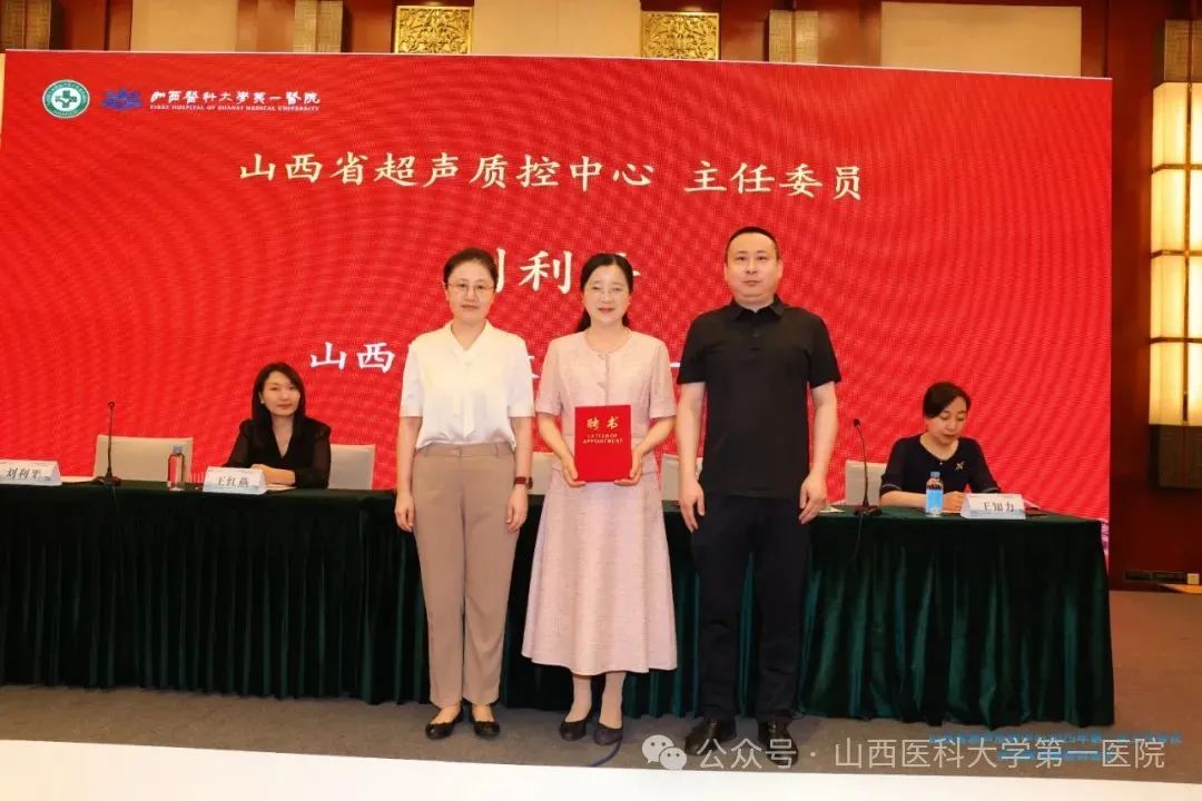 随后,赵宏、周芸为山西省超声质控中心主任委员刘利平颁发聘书;赵宏、周芸、王红燕、王知力及刘利平分别为副主任委员及委员颁发聘书。