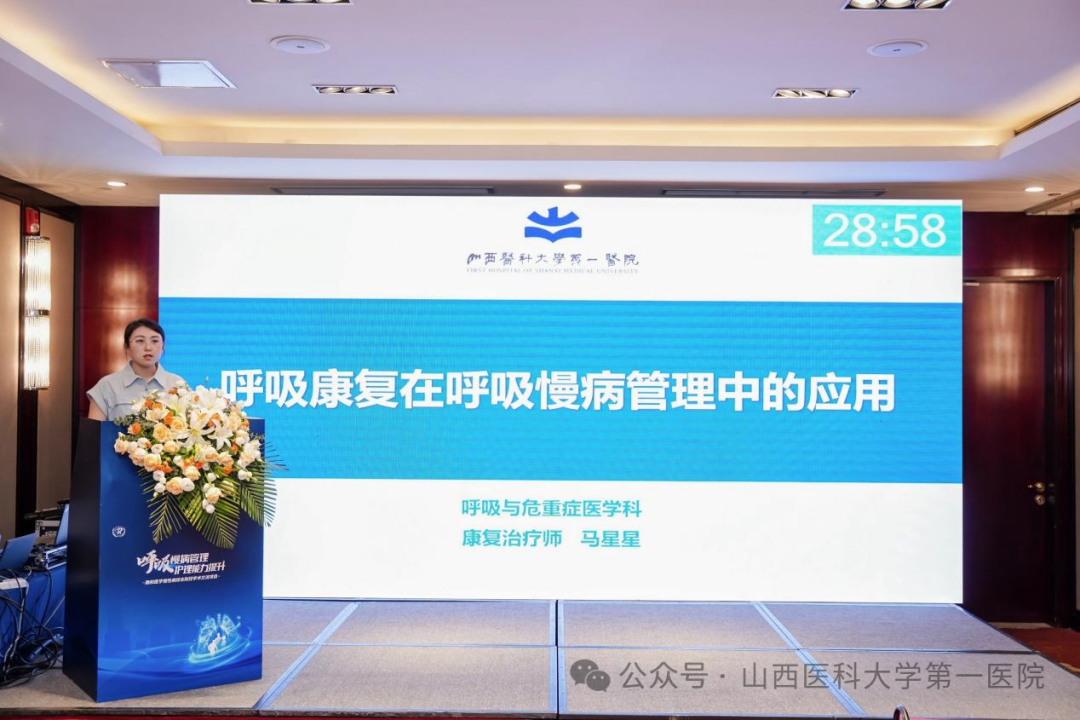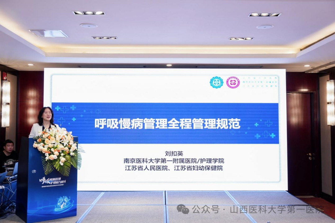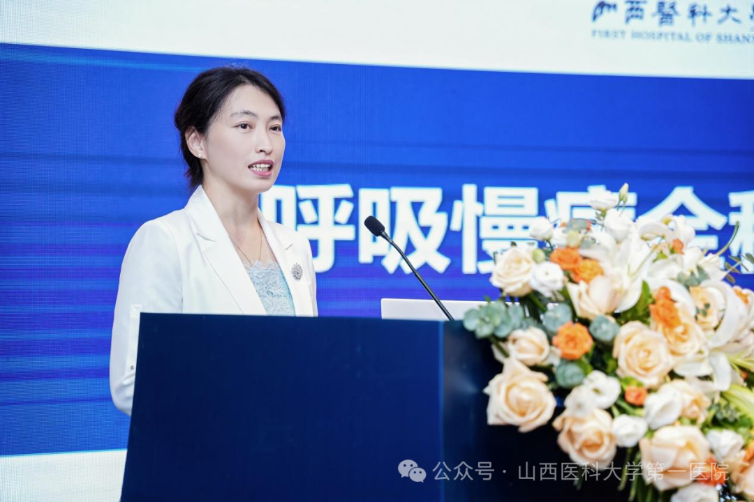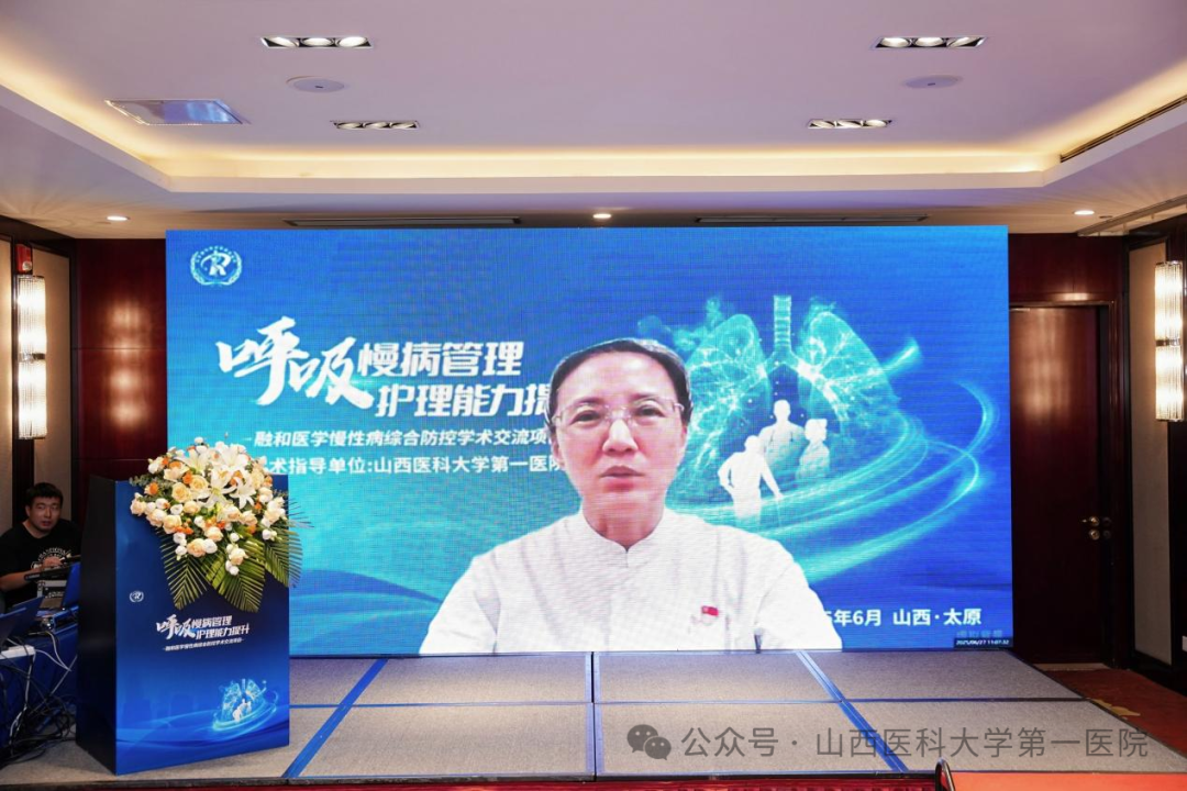 山医大一院护理部主任商临萍致辞,强调了呼吸慢病管理的重要性,护理人员在长期随访和患者教育中扮演着不可替代的角色。