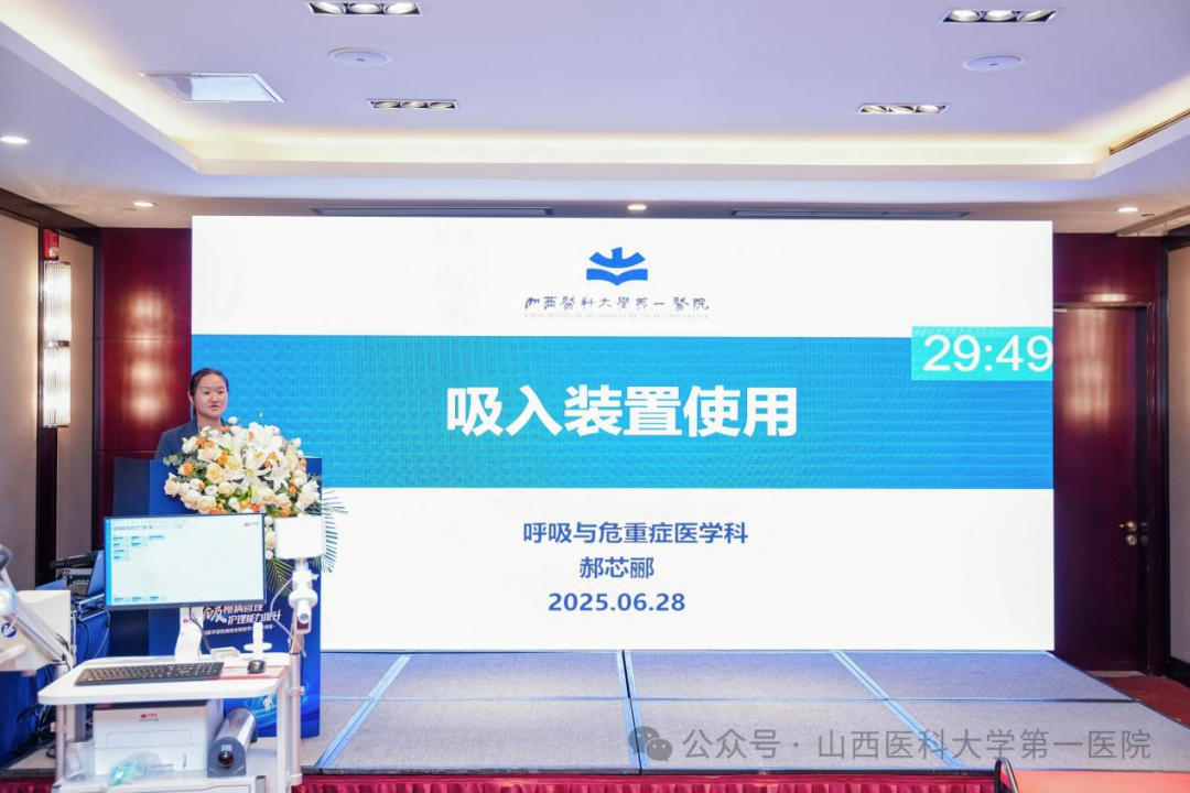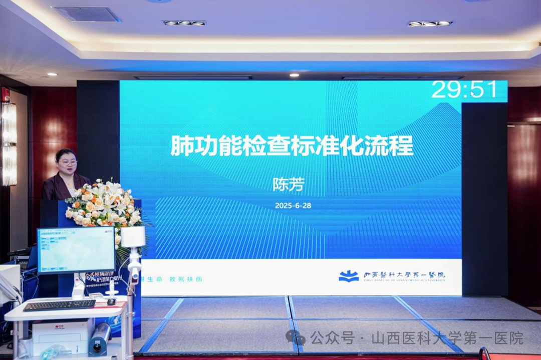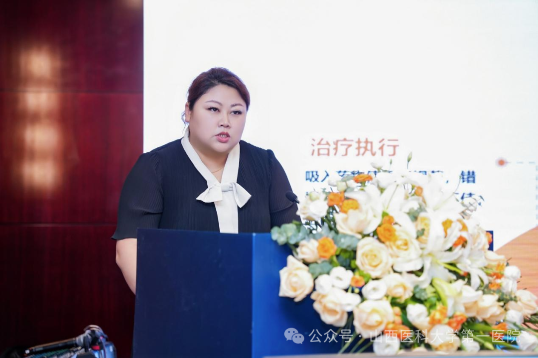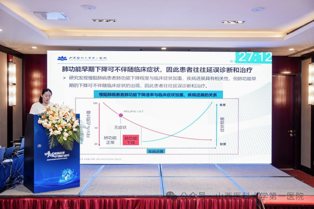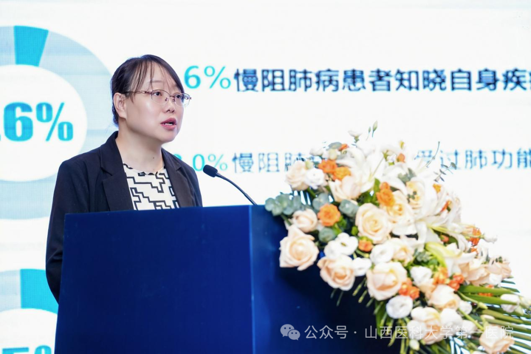 山医大一院护理部主任商临萍致辞,强调了呼吸慢病管理的重要性,护理人员在长期随访和患者教育中扮演着不可替代的角色。