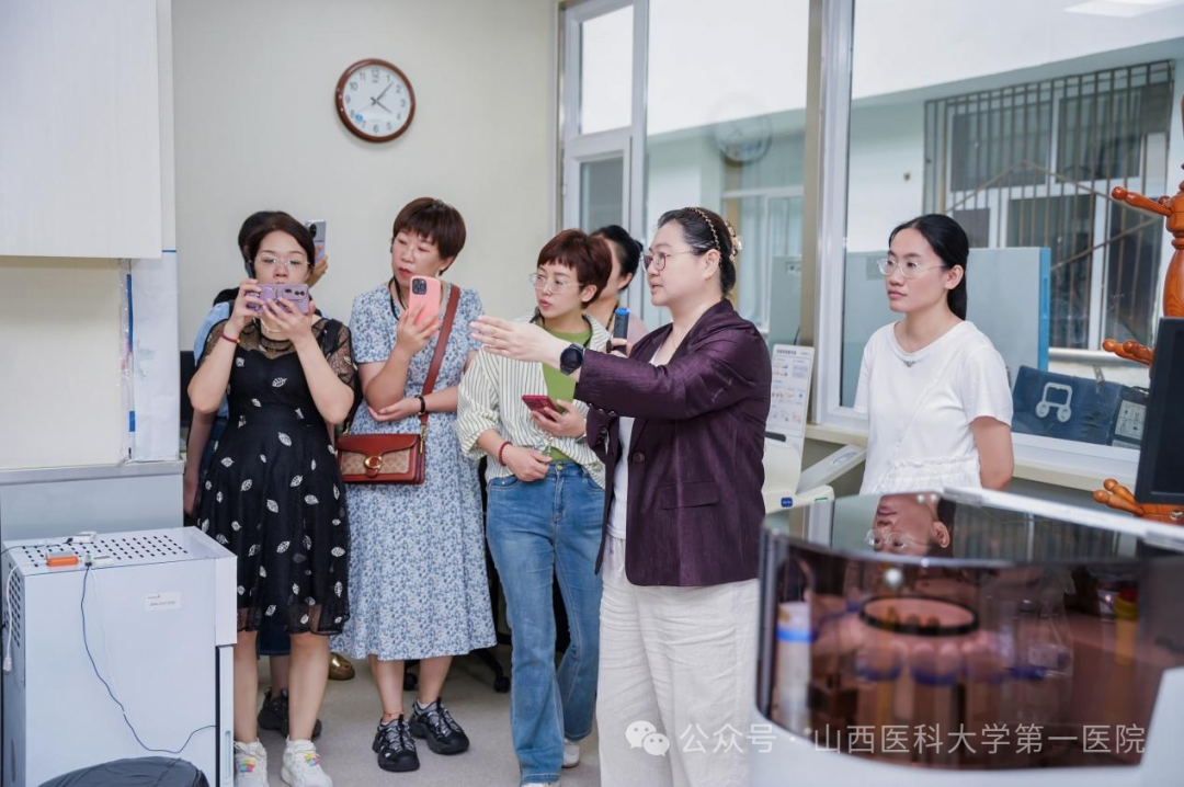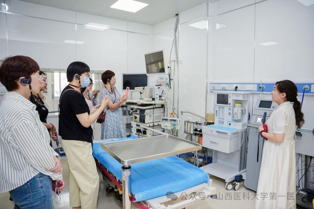 本次会议特色之二为实地参访,山医大一院董彦、郝芯郦、马星星向莅临指导的各位老师展示了呼吸与危重症医学科智慧化病房及呼吸康复中心建设、开展项目;李淑花、王芳介绍了门诊布局及个案管理师在对慢阻肺病、支气管哮喘患者慢病管理中的做法;赵瑞娜、陈芳、李艳青对肺功能室、呼吸介入中心的布局及设备进行了介绍。