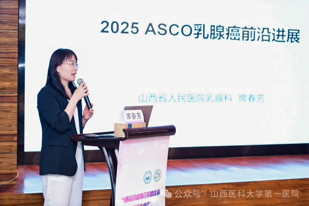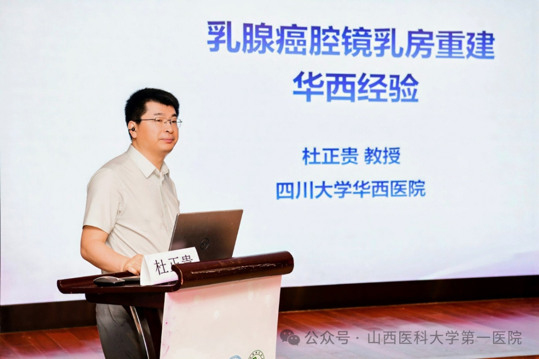 在学术专题环节,国内乳腺领域专家聚焦乳腺疾病腔镜治疗关键技术与研究进展带来多场精彩报告。四川大学华西医院杜正贵分享了“乳腺癌腔镜乳房重建华西经验”,解析腔镜技术在乳房重建中的应用;广东省人民医院廖宁作了“乳腺癌机器人乳房重建”专题报告,详细介绍了机器人辅助手术优势及应用场景,为智能医疗赋能乳腺手术探索新路径;西安交通大学第一附属医院任予主讲“乳腺假体重建测量及并发症处理”,为假体植入重建手术筑牢安全底线;山西省人民医院席春芳梳理“2025年ASCO乳腺癌新进展”,为山西省乳腺疾病诊疗与国际前沿接轨搭建桥梁;山医大一院李云香以“PIK3CA创新靶向研发突破,重塑诊疗格局”为题,介绍了新型靶向药物研发进展,引发与会者对乳腺疾病个体化治疗的思考。