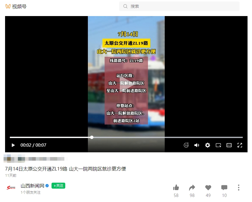 山西新闻网| 7月14日太原公交开通ZL19路 山大一院两院区就诊更方便