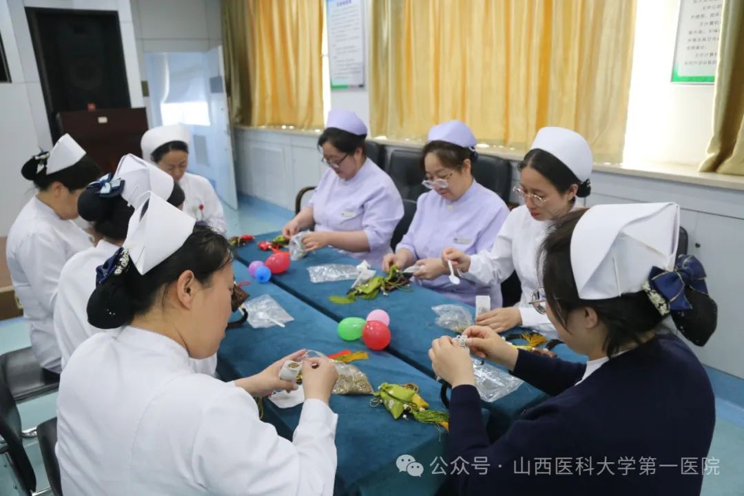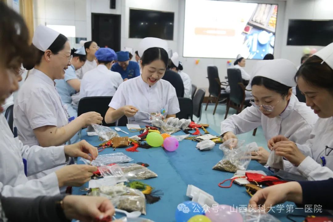 中药香囊是中医药文化与民俗艺术的完美结合。活动现场,任晓宇医师从防疫避秽到安神助眠,为参会人员讲解了各种香囊的药材组方及注意事项;任玉珍护士长带领白衣天使们精心制作特色香囊,一针一线皆是匠心。一枚小小的香囊,不仅承载着中医文化的深厚底蕴,更寄托了医护人员对健康生活的美好祝愿。