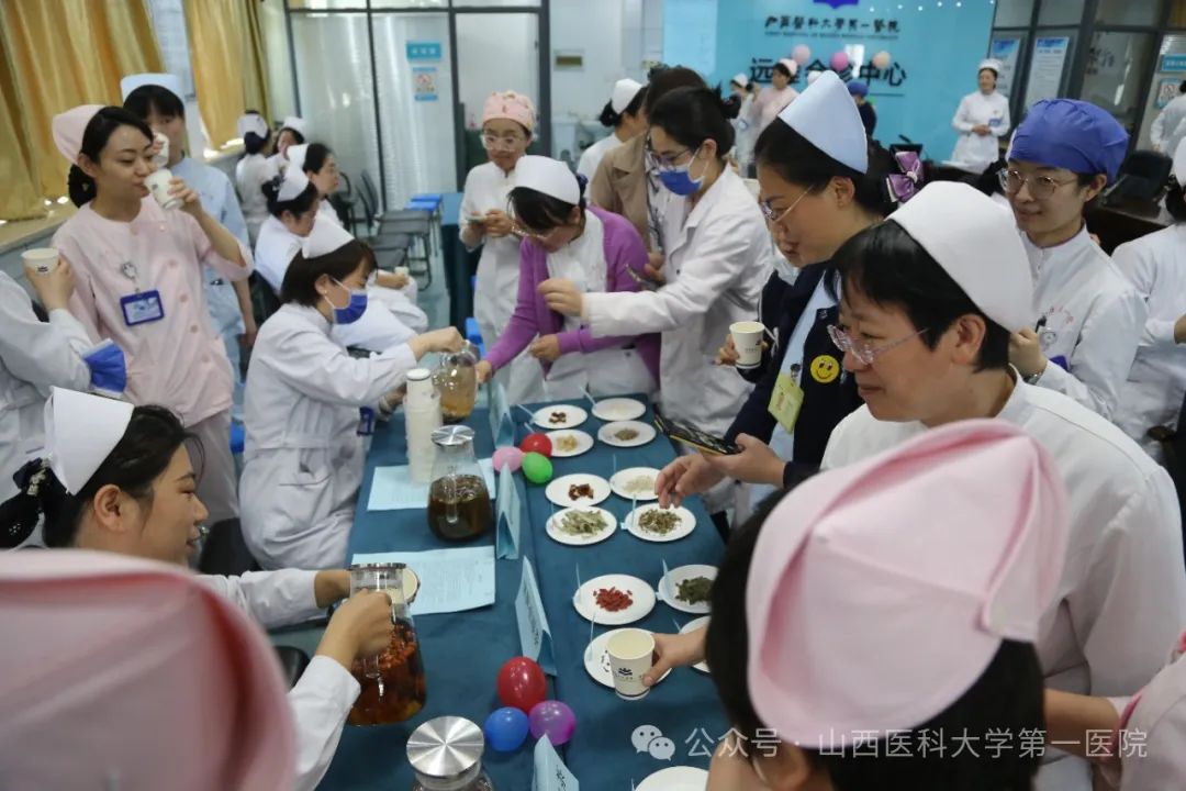 在门诊七楼会议室开展的以“岐黄香韵,杏林茶苑”为主题的中医文化体验将2025年护士节活动月系列活动推向高潮,在中医科医护人员的带领下,百余名医护人员在古法今用的沉浸式体验中共赴健康之约。